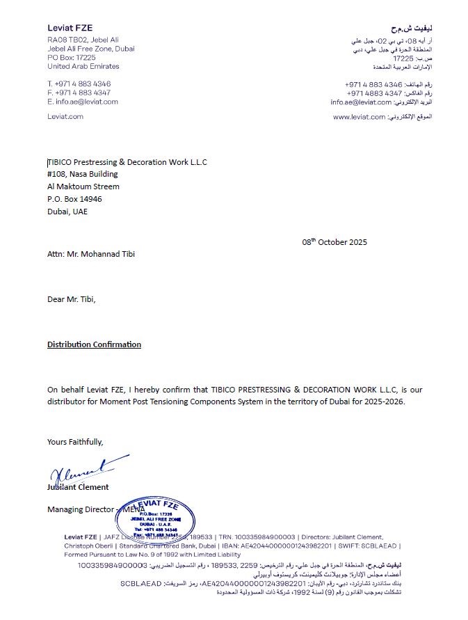 TIBICO Prestressing & Decoration Works LLC is a renowned Post-Tension Civil Engineering firm established in Dubai, recognized for its expertise and reliability. With a highly qualified team of engineers and professionals, we deliver comprehensive post-tensioning solutions—from design and supply to supervision and execution—ensuring precision, efficiency, and strict adherence to international standards.